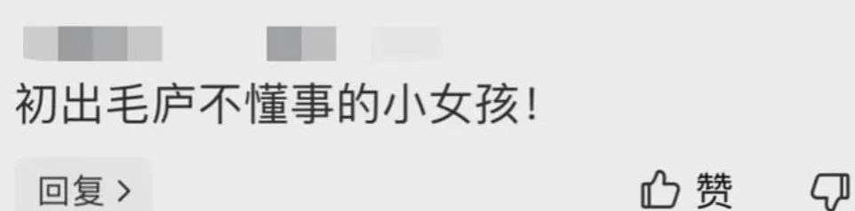 有网友留言:初出茅庐,不懂事的小女孩。