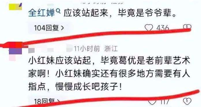 小红妹应该站起来,毕竟葛优是前辈艺术家啊!