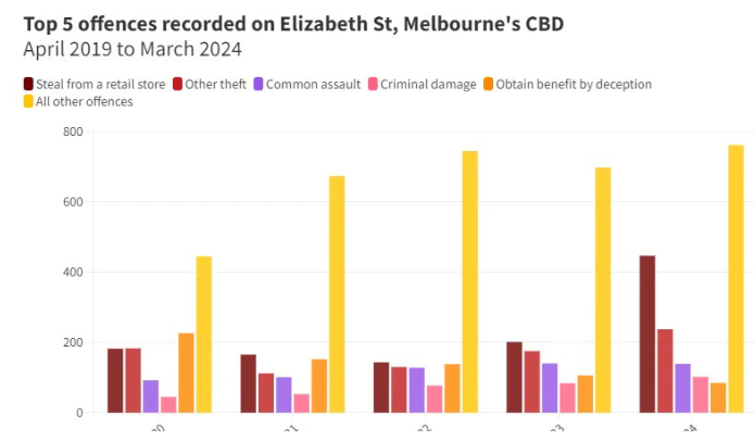 Elizabeth St的各种罪案发生数量,