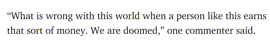 一位网友说:"这个世界是怎么了?这种人都能挣这么多钱。我们都完了。"