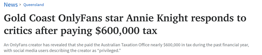 据报道,今年7月,来自黄金海岸的OnlyFans网红Annie Knight曾在社交媒体上透露,她一年的收入能达到100多万澳元,甚至能到200万澳元。
