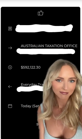 收据显示,她在上一财年的纳税额为592,122,30澳元。