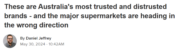 在这次排名中,Woolworths已经跌出“最受澳洲民众信任品牌”前十,排在第34名!而Coles则是暴跌了221位,成为“最不受信任品牌”第九名...