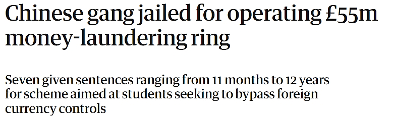 据悉,这个团伙的目标是绕过中国外汇管制,在英国伦敦洗钱超过5500万英镑(约5.17亿人民币)。