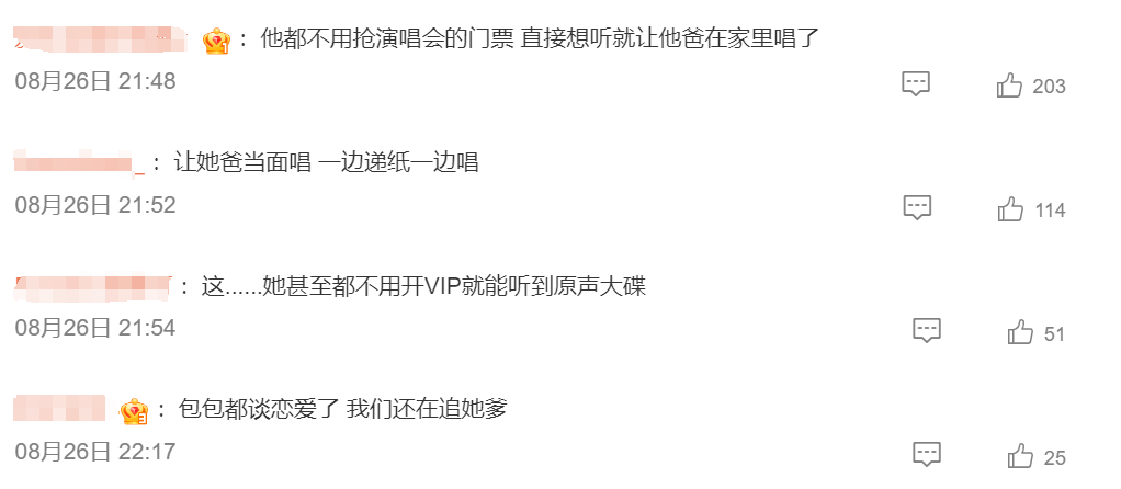 还有网友说,如果包包失恋了,她会不会一边哭,一边偷偷地听老爸唱的苦情歌?