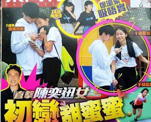 早在她14岁时,就被香港记者拍到她和乳臭未干的小男生手牵手在街头逛街。