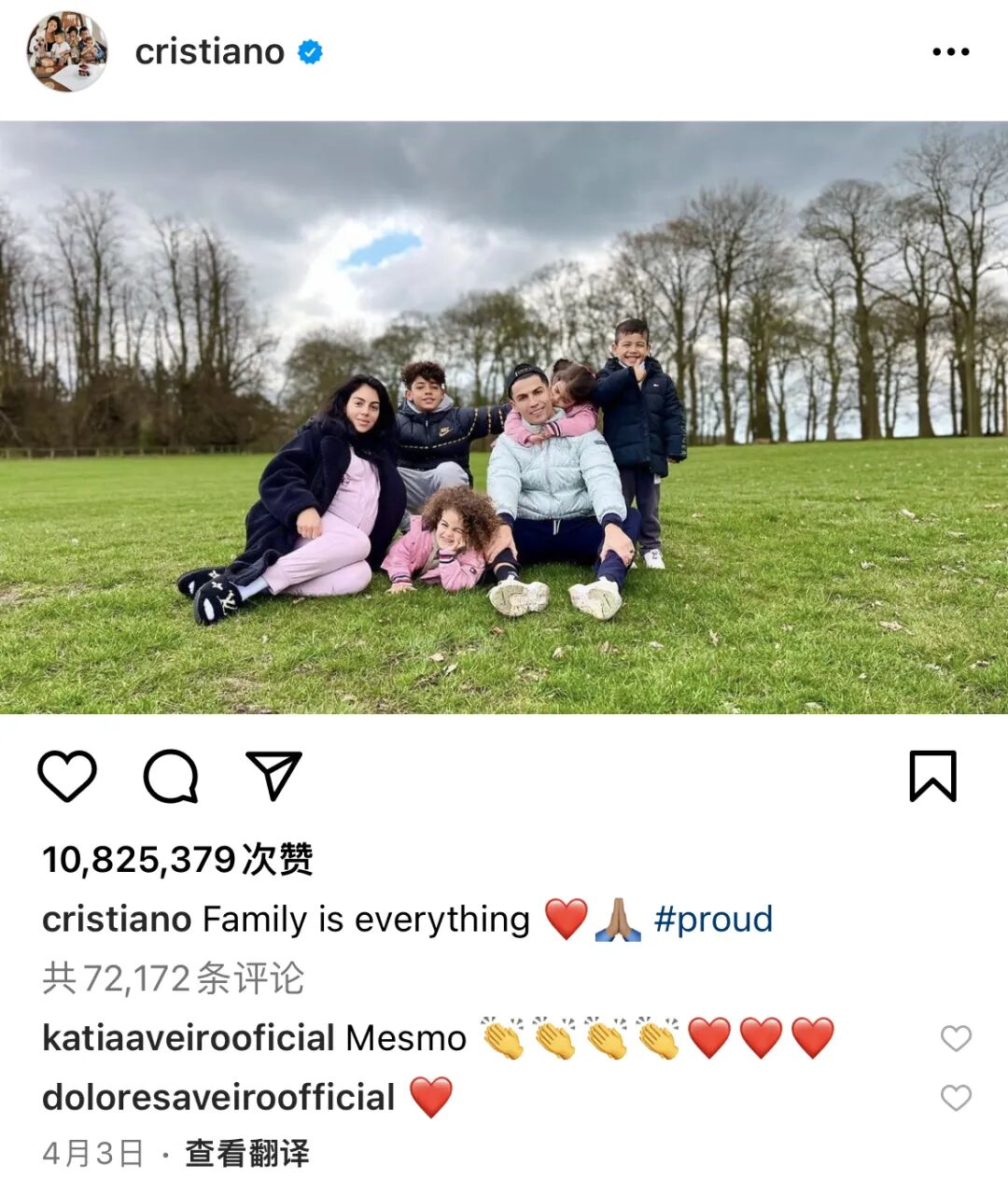 其实了解C罗的人都知道,他很看重家庭,从他的社交媒体中就可见一斑: