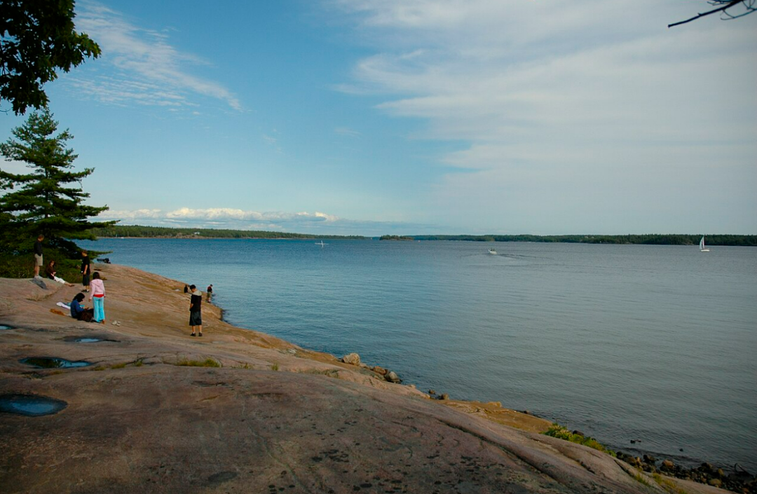 Killbear 最著名的景点之一是其沿海的悬崖,这里不仅可以俯瞰乔治亚湾的壮丽景色,还能看到远处散布着的小岛。这些悬崖也是游客拍照和欣赏日落的绝佳地点。