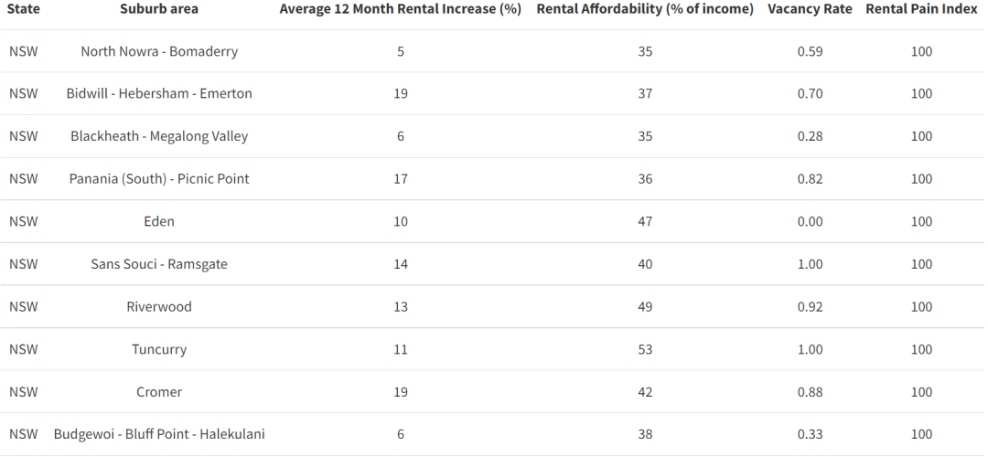 房地产研究和分析公司 Suburbtrends 发布的 9 月份租金痛苦指数 (RPI) 报告显示,35 个地区处于临界点。