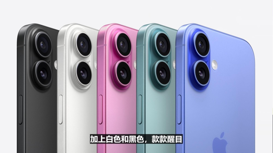 颜色上,iPhone 16提供群青/深青/粉色/白色/黑色五种颜色可供选择;