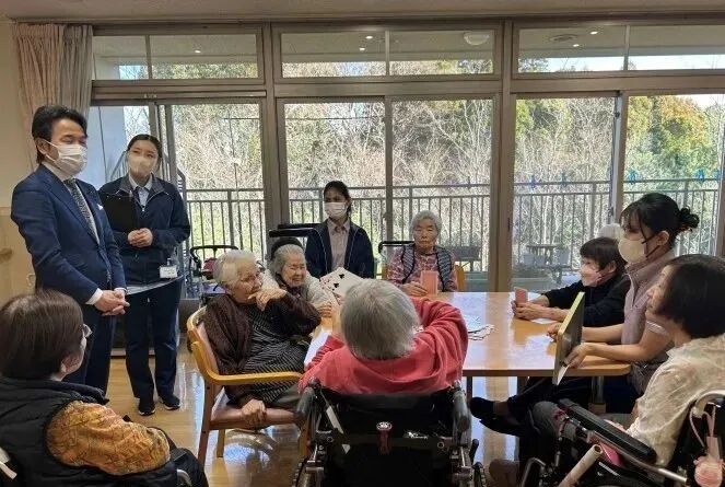 2024年3月18日,日本厚生労働副大臣滨地为了了解外国人技能实习制度的实际情况,访问了护理老人保健设施。来源:厚生劳动省网页