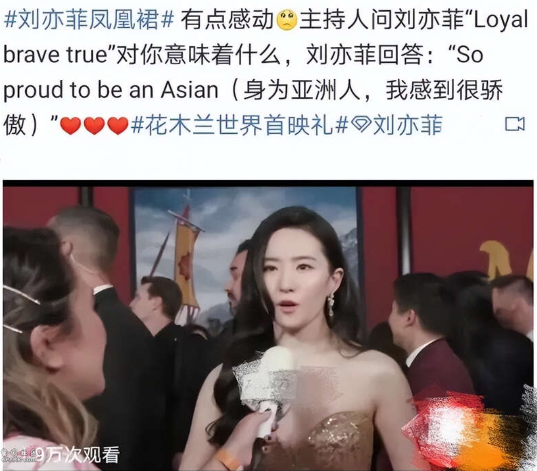 对于自己是美国国籍一事,刘亦菲曾经表示:“我为自己是亚裔明星而感到骄傲”。
