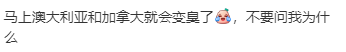 “马上澳大利亚和加拿大就会变臭了, 不要问我为什么。”