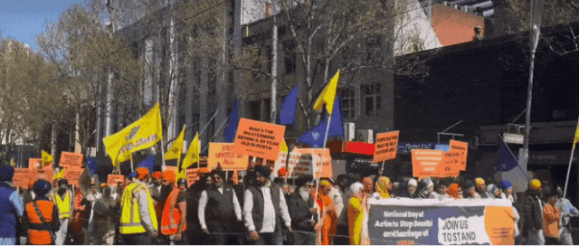 数百名维州锡克教徒沿着墨尔本中央商务区斯旺斯顿街游行,其中许多人举着标语,要求追究此罪行肇事者的责任,不少华人目击现场。