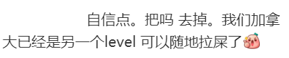 “我们加拿大已经是另一个level,可以随地拉屎了。”
