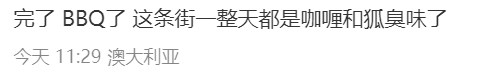 “完了,BBQ了,这条街一整天都是咖喱和狐臭味了。”
