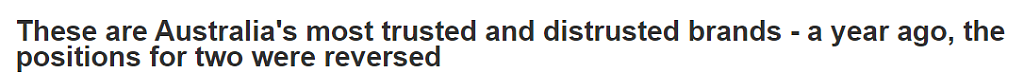 Woolworths的排名猛跌了194位,成为最不信任品牌第5名。