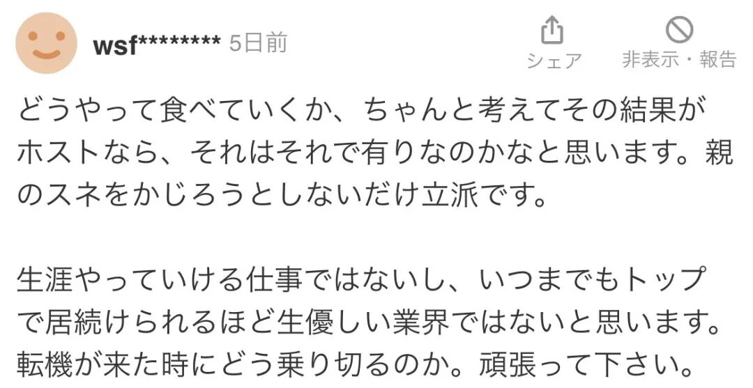 对于前奥运种子选手爆改人气牛郎这事,日本网友们表现的意外宽容。不同于以往牛郎新闻下面的口诛笔伐,对于森晴太郎的选择大部分网友表示理解和尊重,甚至觉得他努力争NO.1的样子很帅。