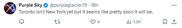 “虽然多伦多还不是纽约,但感觉很快就会成为纽约了!”