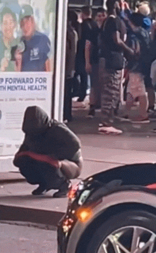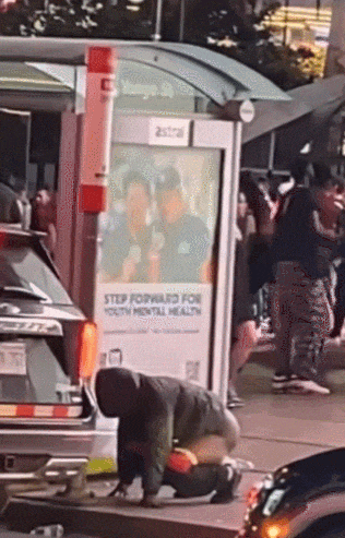 然后站起来,提起裤子离开了,仿佛什么都没有发生过的样子。他的身后有大批路人经过,但似乎没有人注意到他。