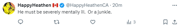 与此同时,也有网友表示,“他可能有严重的精神疾病,或者是个瘾君子。”