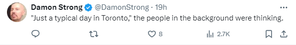 “这只是多伦多普通的一天,背景中的路人们大概是这样想的。”