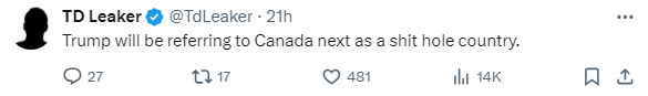 “特朗普接下来会把加拿大称为粪坑国家。”