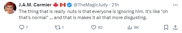 “真正疯狂的是,所有人都无视他,就好像——哦,这很正常,让这一切变得更加令人厌恶!”