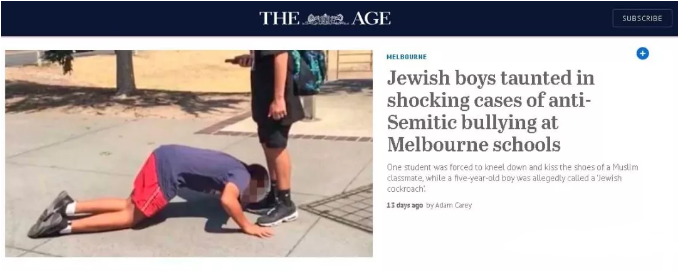 (7岁犹太男孩被逼跪下舔穆斯林同学的鞋子)