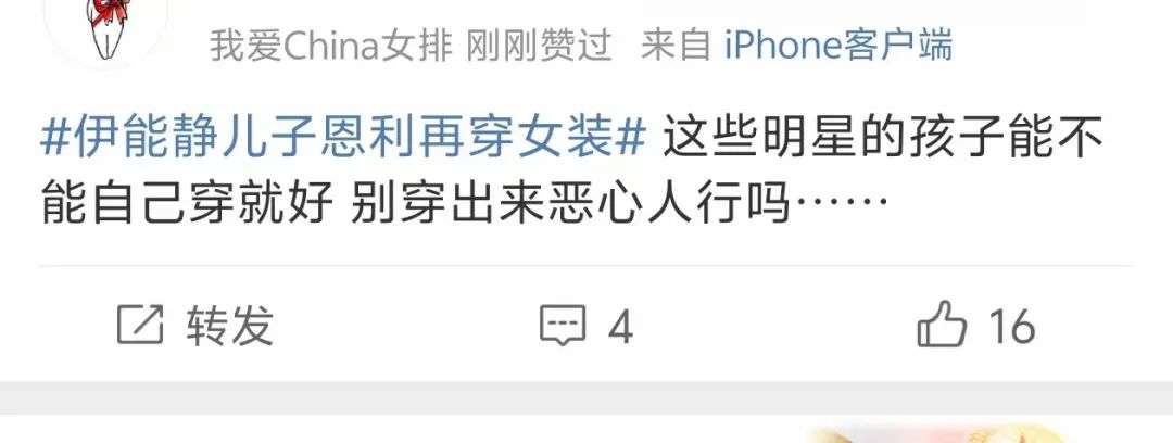 收藏伊能静儿子恩利再穿女装惹争议,大波浪卷发搭配性感小蕾丝!