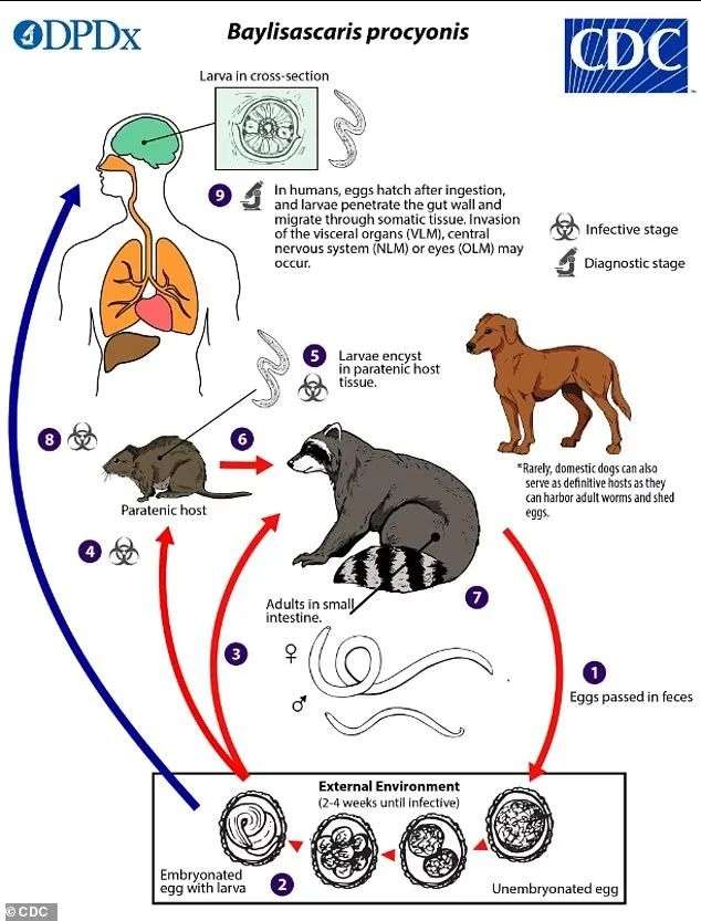 目前,官方尚未透露这两名感染者的具体身份、性别和年龄等细节。虽然感染初期的症状可能较为轻微,例如发烧、疲劳或恶心,但在严重的情况下,寄生虫感染会迅速影响神经系统,导致器官损害,甚至可能致命。历史上,约26%的浣熊蛔虫感染患者因该疾病去世,另一些患者则终生受残疾困扰,包括失明和脑损伤。