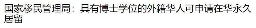 此前,中国国家移民管理局就在官方公众号上解答了外籍华人博士在华申请永久居留的疑问。