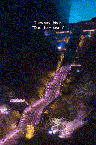 被天门山硬控的不只“蜜雪夫妇”,晚上亮起灯,外国人们惊叹这是“door to heaven”(通往天国的门)。