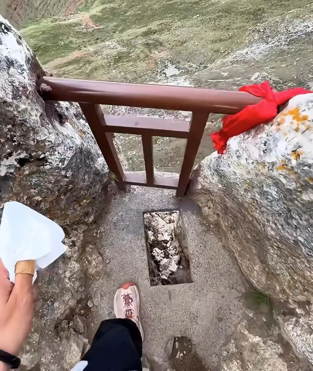 还有更不一样的,如厕在山上,脚下就是深不见底的山谷。