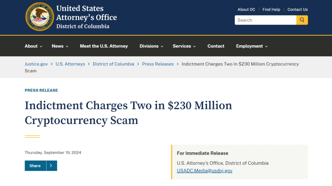洛杉矶华人资讯网9月22日综合报道 美国司法部、联邦调查局(FBI)及国税局(IRS)近日联手破获了一起大规模的加密货币诈骗案,在洛杉矶逮捕了两名男性嫌疑人,其中一人是新加坡公民。