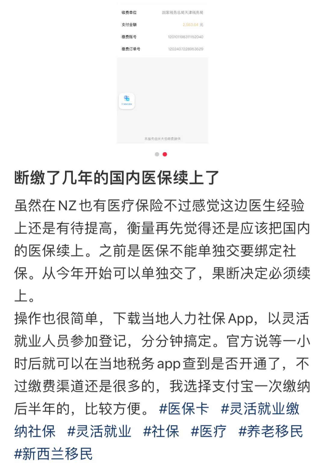 有网友表示,“断缴了几年的国内医保续上了”,之前因为医保和社保绑定在一起,所以没办法单独缴纳,现在能够单独交了,他便果断续上。