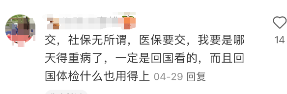 有网友觉得“社保无所谓,医保要缴,要是哪天得重病了,一定回国看的,而且回国体检什么的也用得上”。