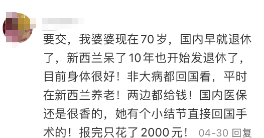 “国内医保还是很香的,之前婆婆有个小结节直接回国手术的,医保报销完只花了2000元。”