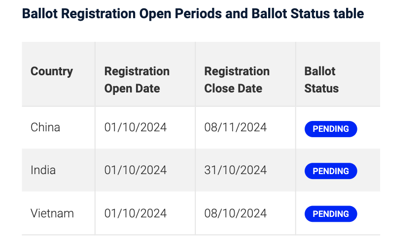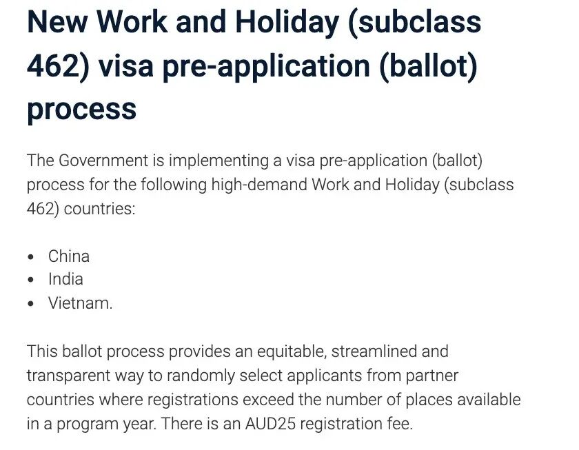 最新政策显示,中国大陆、越南及印度地区的申请者将首次采用抽签制度。