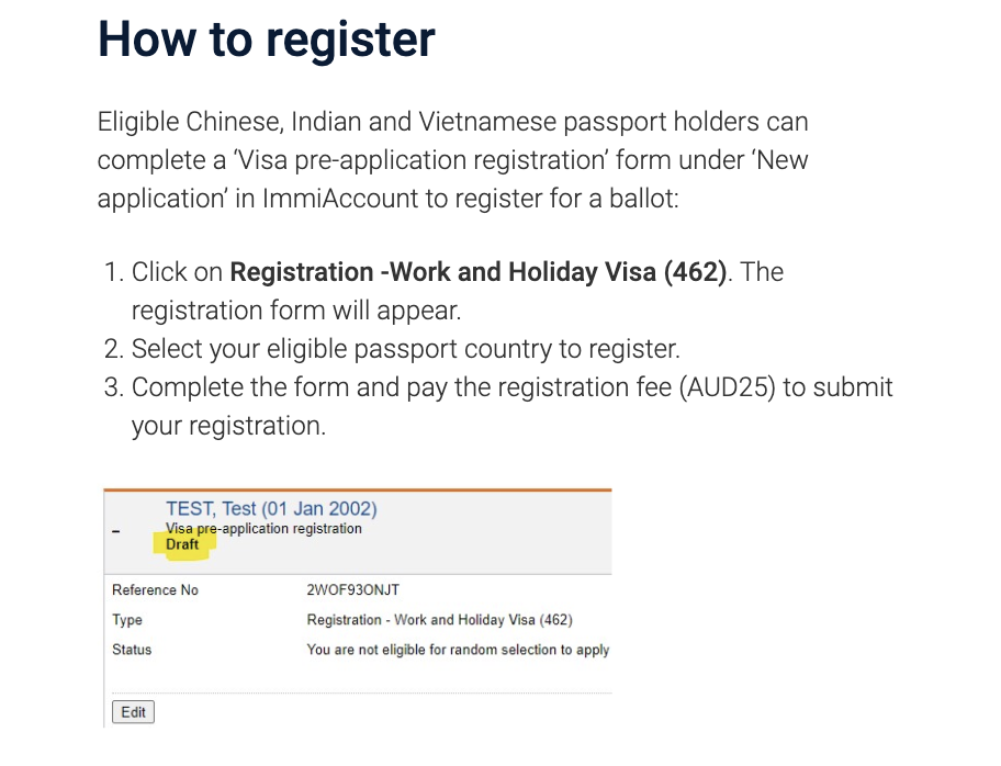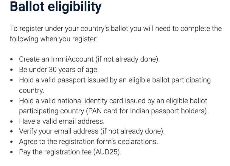 申请者需在此期间完成注册流程,包括提供护照ID、确认年龄(未满30周岁)、有效邮箱地址,并支付25澳币的注册费用。
