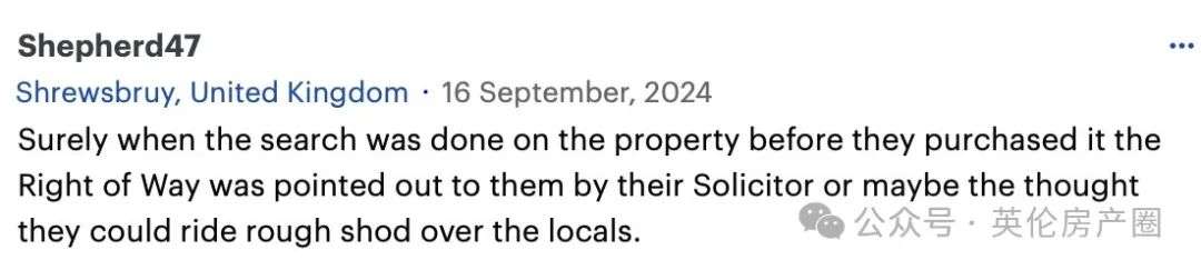 收藏邻里之间因一条马道使用权开吵!三家人花了35万镑律师费还没打完!