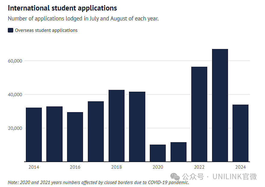 职业教育和培训的签证申请则出现“大幅下跌”,从10,916份降至2239份,原因是政府严厉打击了一些不法运营者。