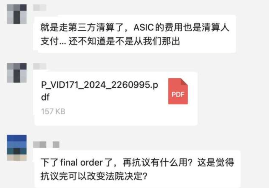 此外,还有40万澳元的公司资产存放在新加坡,清算人正通过新加坡司法系统的法律程序寻求追回这些资产。