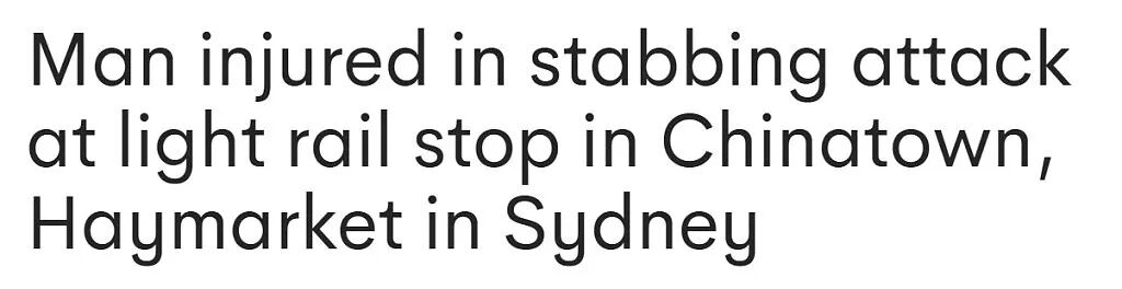 澳洲七号台新闻9月30日报道,悉尼唐人街在周日下午发生一起持刀伤人案,一男子在轻轨站附近被捅伤。