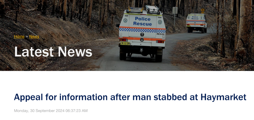 案件发生于周日下午4点20分左右,地点位于Haymarket区Darling Rd。