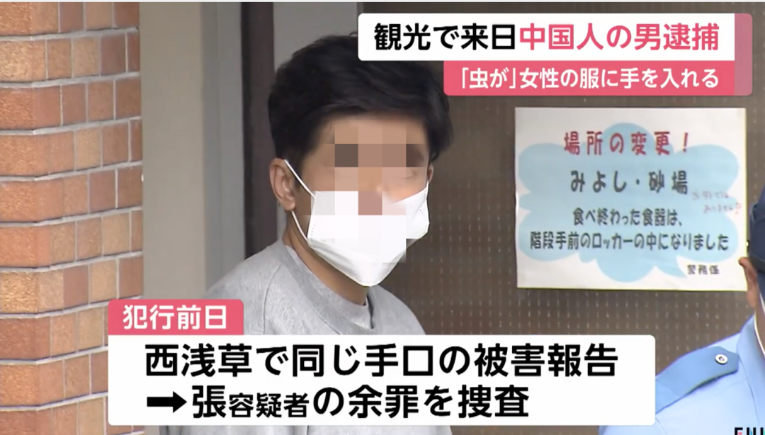 张某在今年6月也曾以旅游目的来日本,在东京浅草的商业街路上,袭胸了一位刚结束打工正要回家的二十多岁女性,他当时一边说“有虫子!虫子!虫子!后背”,一边把手伸进了该女性的衣服里,并直接摸了对方的胸部。