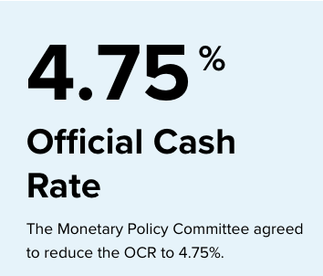 终于!新西兰储备银行今天宣布降息50个基点至4.75%