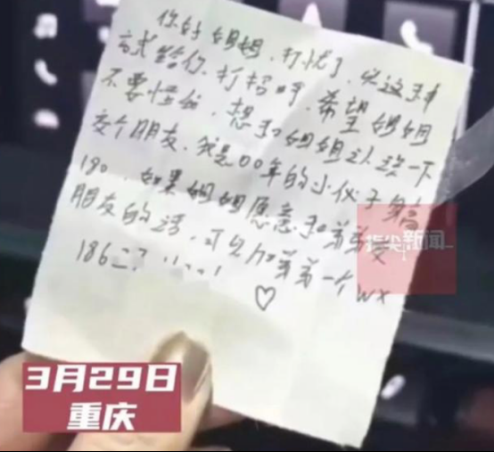 在纸条里,他还特意强调了自己身高180,是个00后的小伙子。
