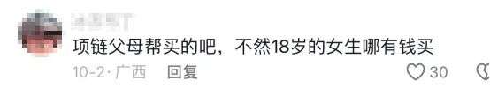 “项链父母帮买的吧,不然18岁的女生哪有钱买?”