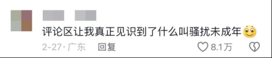 “评论区让我真正见识到了什么叫骚扰未成年。”